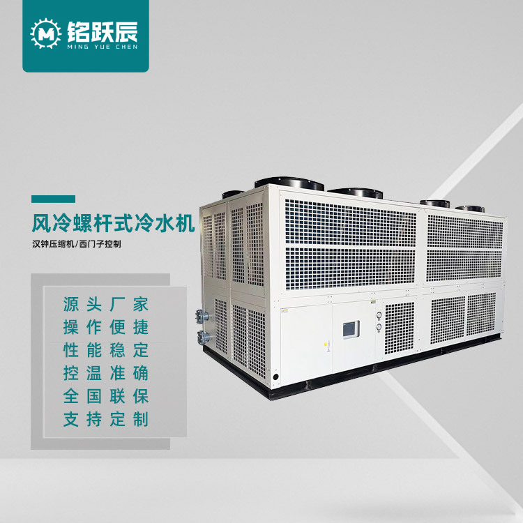 冷水机组有:MYC-AS风冷常温/中低温箱式冷水机、MYC-WS水冷常温/中低温箱式冷水机组、MYC水冷常温螺杆式冷水机组、MYCZ水冷中低温螺杆式冷水机组、ZFMYC蒸发冷常温螺杆式冷水机组、ZFMYC蒸发冷中低温螺杆式冷水机组、JMHC降膜式常温螺杆式冷水机组、复叠机冷水机组系列等;